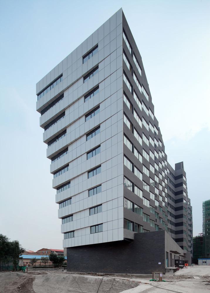 隨著過去十來年中國當(dāng)代藝術(shù)的升溫,年輕藝術(shù)家和各種與藝術(shù)相關(guān)的產(chǎn)業(yè)近幾年不斷涌入宋莊。當(dāng)?shù)卦鷳B(tài)村民的小院除了農(nóng)民自住以外,大部分已被租賃,并呈現(xiàn)短缺。原生態(tài)村落、藝術(shù)家、藝術(shù)產(chǎn)業(yè)和自由小商業(yè)之間的相互碰撞,以及外來人口的膨脹不可避免地帶來建筑密度的增加。在這種情形下,中小面積的公寓、工作室、展廳和小商業(yè)的集合體成為一種自然生長出來的、適合當(dāng)?shù)匦枨蟮慕ㄔO(shè)模式。與政府統(tǒng)一開發(fā)不同,宋莊特定的地域文化特征使得一棟建筑的建造通常由幾方集資,建成后共同經(jīng)營。東潤公寓就是這樣一個(gè)集合體,它的設(shè)計(jì)體現(xiàn)出建筑的內(nèi)在成因和經(jīng)營模式,是對當(dāng)?shù)靥囟ㄎ幕h(huán)境的映射。它位于宋莊最主要道路一側(cè),十字環(huán)島的東北角。基地東西長110米,南北進(jìn)深20米。