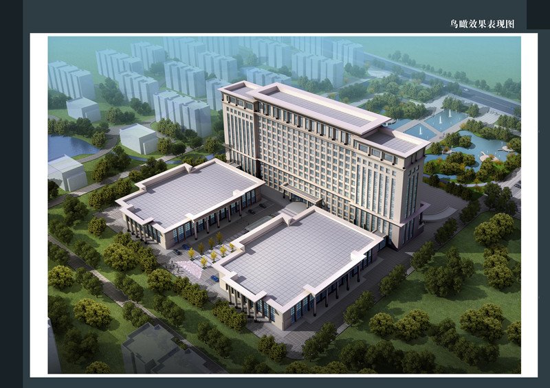 作為臨沭產(chǎn)業(yè)區(qū)的地標(biāo)性建筑,建筑形態(tài)力求體現(xiàn)高端大氣的特點(diǎn),將會(huì)議廳和高層辦公樓進(jìn)行南北分開(kāi),夾道而迎,高層辦公則為簡(jiǎn)潔洗練的豎向大樓,水平和豎向的立面,通過(guò)連廊聯(lián)系,構(gòu)成流暢完整的形態(tài)邏輯。本方案通過(guò)設(shè)置中庭、空中花園、架空景觀層等手法,達(dá)成通風(fēng)、采光等被動(dòng)生態(tài)技術(shù),并豐富空間體驗(yàn);同時(shí)引入種植屋面、太陽(yáng)能、雨水回收、中水循環(huán)等技術(shù),大幅降低能耗及碳排放,達(dá)到高標(biāo)準(zhǔn)的生態(tài)建筑要求。